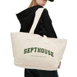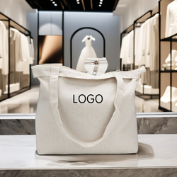 Promosyonlar için özel Logo baskılı geri dönüşümlü düz organik pamuk tuval Tote alışveriş fermuarlı çantalar